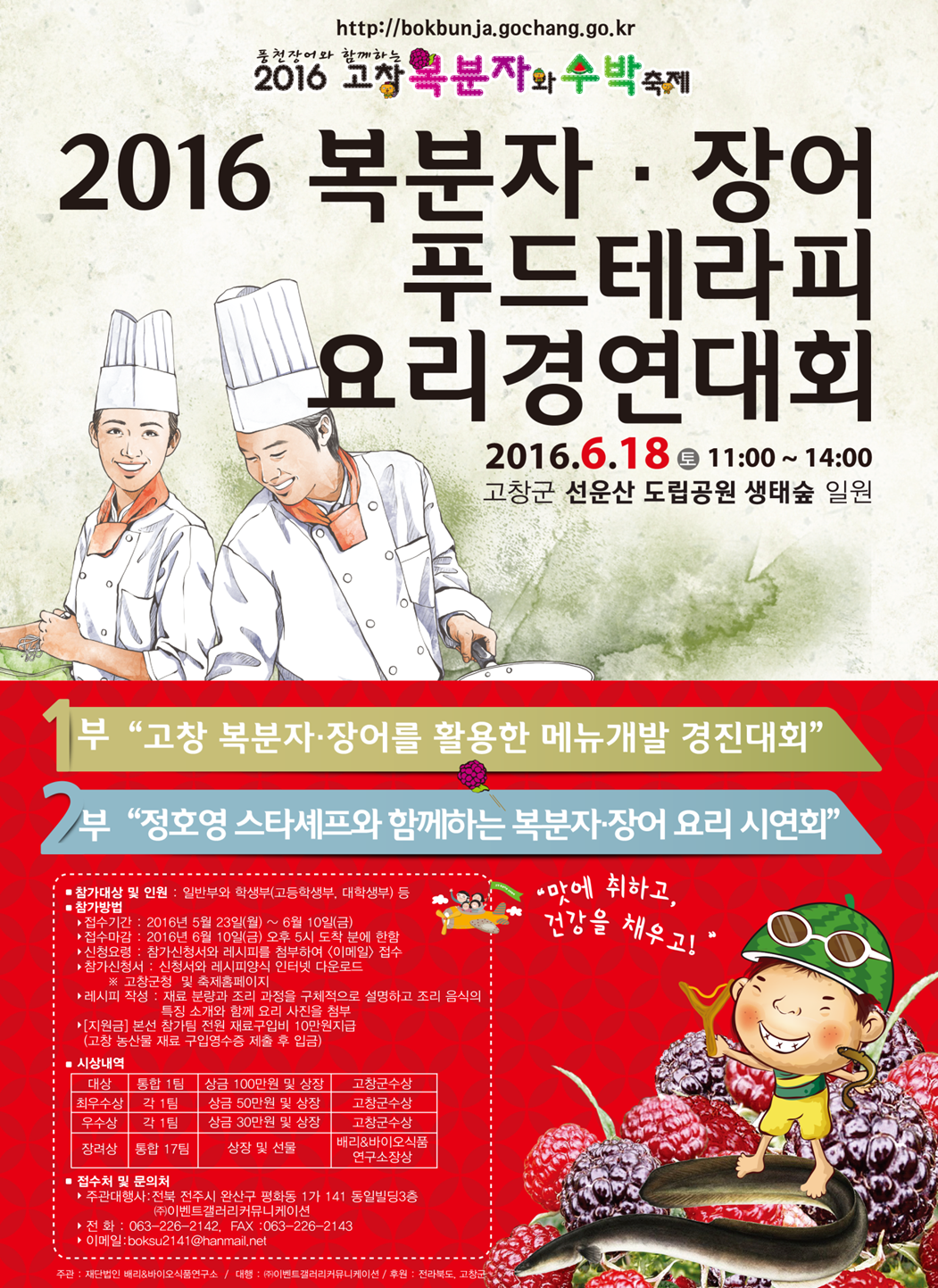 - 1부 : 고창 복분자·장어를 활용한 요리 경연대회(11:10~12:00)