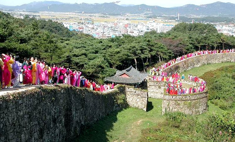 과거 그대로의 모습을 재현하기 위해 올해 축성560주년을 맞아 총560명의 부녀자들이 한복을 차려입고 답성놀이를 재현